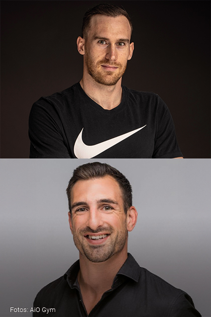 Hinter dem AiO Gym stehen die beiden Gründer und Geschäftsführer Marcel Ott und Dominik Distelberger, die ihre Leidenschaft für Sport und Gesundheit zu einem gemeinsamen Konzept verbunden haben. Beide sind 35 Jahre alt und blicken auf erfolgreiche Karrieren im Leistungssport zurück: Dominik war Leichtathlet und Teilnehmer der Olympischen Spiele 2016, hat einen MBA in Sportmanagement und setzt im Studio u. a. seine Kompetenz als Athletiktrainer ein. Marcel erreichte im Judo bei der Weltmeisterschaft 2013 den siebten Platz. Seit dem Ende seiner Profisportlerkarriere arbeitet er als Sporttherapeut und Personal Coach. Ihre Erfahrungen aus Spitzensport, Therapie und Coaching fliessen in die tägliche Arbeit im AiO Gym ein – mit dem Ziel, Menschen individuell und ganzheitlich zu betreuen.
