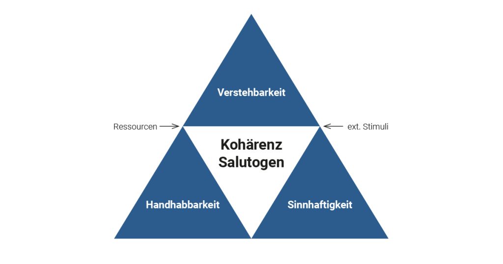 Zur Erklärung dieser Wirkzusammenhänge bietet das salutogenetische Modell nach Aaron Antonovsky (1997) eine hilfreiche Perspektive. Im Zentrum steht das Kohärenzgefühl (siehe Abbildung 1) – ein Gefühl innerer Stimmigkeit, das durch drei Kernkomponenten definiert wird: